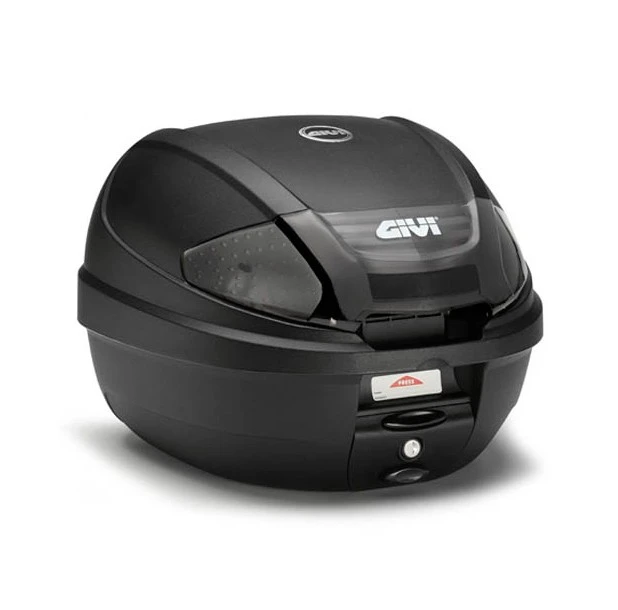 E300 MONOLOCK Topcase schwarz 30 Liter, mit neuem Verschluß und transparenten Reflektoren, inkl. Universalplatte und Montagekit. Verschlußblock wie bei den Koffer Micro 2