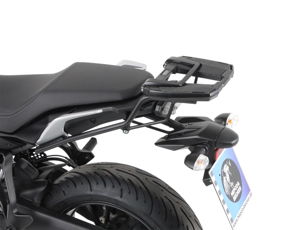 Topcaseträger bestehend aus einem modellspezifischen Anbaukit und der Easyrack Adapterplatte zur Aufnahme von Hepco&Becker Topcases oder Softgepäck (nicht passend für Topcases mit Universal Kunststoffplatte oder Orbit Topcase).