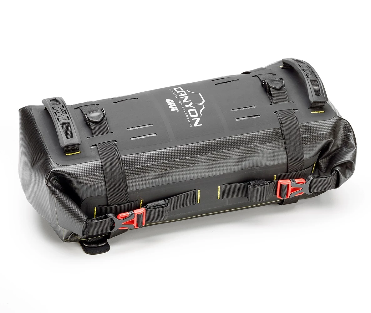 Die Gepäckrolle GRT724 besitzt rechts und links zwei Tragegriffe, zwei Rollverschlüsse sowie einen Schultergurt und Molle-Aufsätze zur Erweiterung mit zusätzlichen Taschen aus dem Molle System.