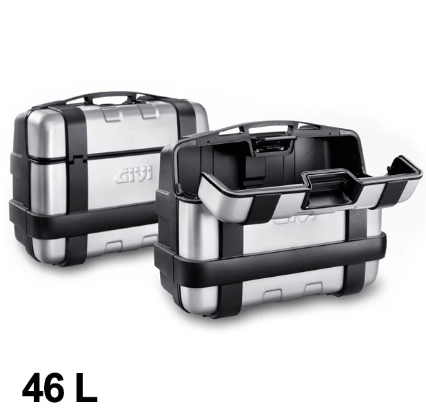 GIVI’s neue TREKKER Koffer sind in drei Versionen verfügbar: einmal mit 46 Litern (TRK46N) und einmal mit 33 Litern (TRK33N) Ladekapazität. Sie bieten dadurch die ideale Lösung für Motorräder, die den Auspuff nur auf einer Seite haben. Montieren Sie den kleineren Koffer auf der Seite des Fahrzeuges, an dem der Auspuff positioniert ist, und den größeren Koffer auf der anderen Seite und Sie vermeiden eine asymmetrische Ansicht, wie bei traditionellen Seitenkoffern. Bei beiden Modellen kann entweder der ganze Deckel geöffnet werden, oder nur einen Teil davon, indem man die kleinen Schieber im Koffer verstellt. Das Ein- und Ausladen kleinerer Utensilien ist dadurch einfach und schnell möglich ohne das gesamte Gepäck umräumen zu müssen. Dank der schicken Beschichtung aus echtem Aluminium sind diese Koffer sowohl für Enduros als auch für elegante Tourenmaschinen geeignet. Die neuen TREKKER haben das patentierte Monokey®-Befestigungssystem und sind einzeln erhältlich. Dadurch kann der Kunde frei wählen, wie viele Koffer er montieren möchte, welche Größe er benötigt und was am besten zu seinem Fahrzeug passt.