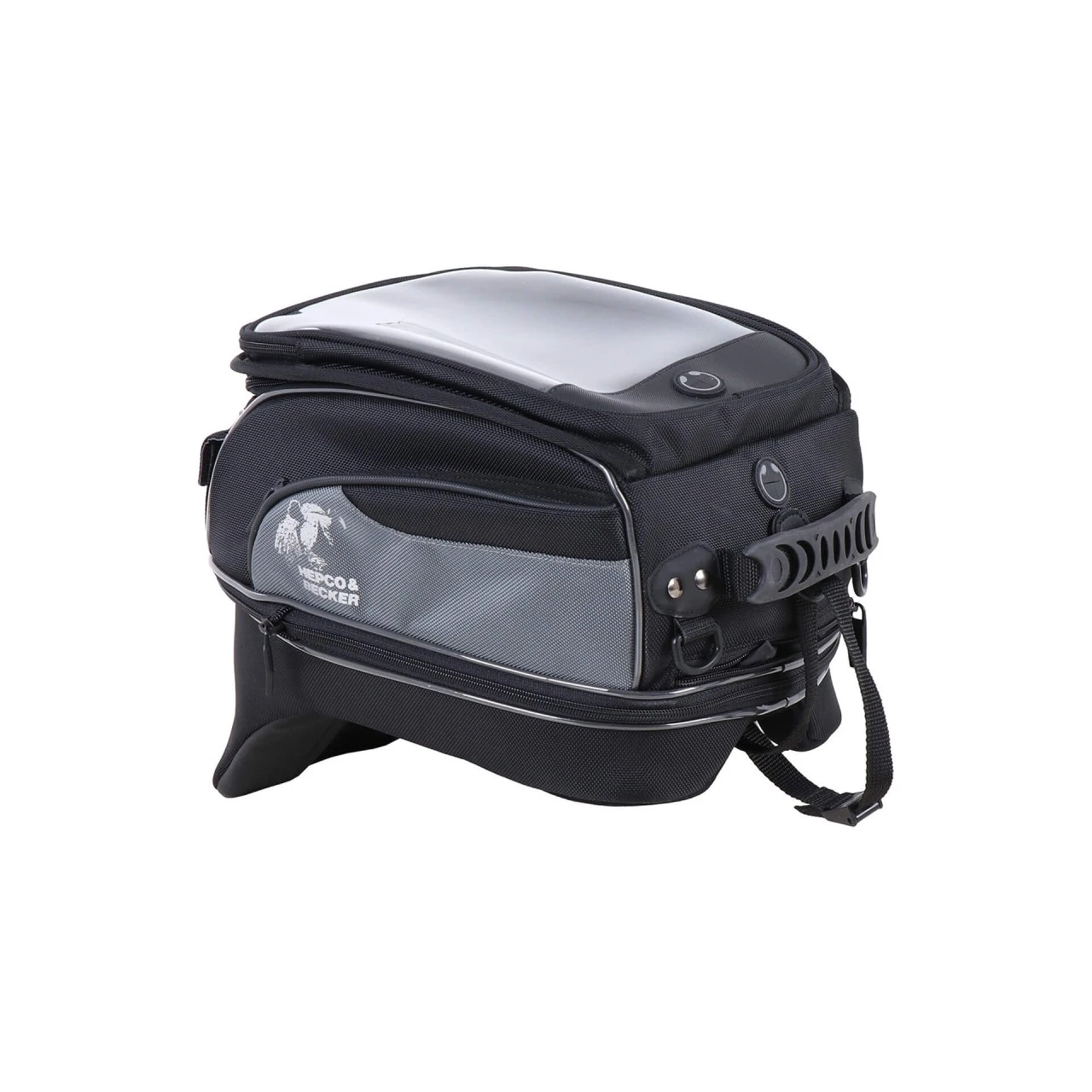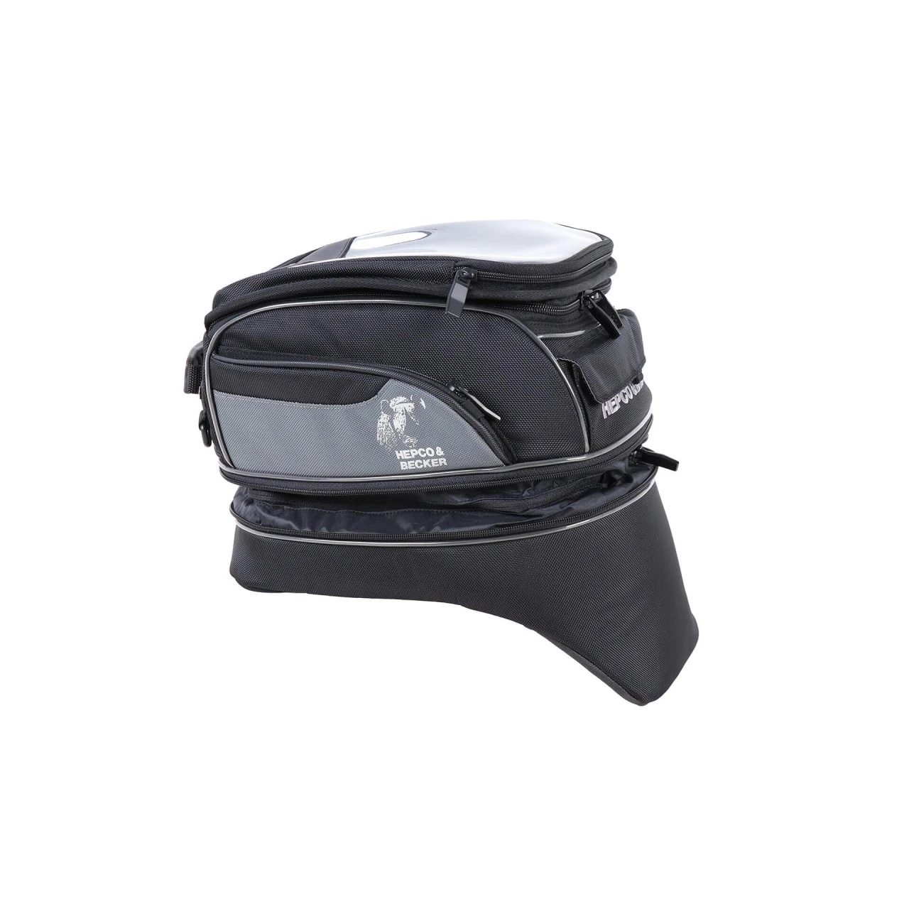 Die Street Tankrucksäcke erweitern die Transportkapazität eines Motorrads um eine blitzschnelle Variante: sie lassen sich dank des innovativen Lock-it Tankrings ohne lästiges Gefummel rasch befestigen bzw. abnehmen. So sind die am häufigsten gebrauchten Utensilien auf Ihrer Tour immer schnell verfügbar. Die Tankoberfläche wird geschont, da der Tankbag nicht aufliegt. Benötigt wird lediglich ein modellspezifischer Lock-it Tankring und dieser Tankrucksack von Hepco & Becker. Gefertigt aus robustem und reißfestem Polyester-Gewebe mit sicherheitsförderndem Reflexkeder, gibt er eine tolle Figur ab. Stark wasserabweisend mit wasserfesten Reissverschlüssen und zusätzlichen wasserdichten Innentaschen vereint der Tankrucksack Street alle HEPCO & BECKER typischen Punkte.