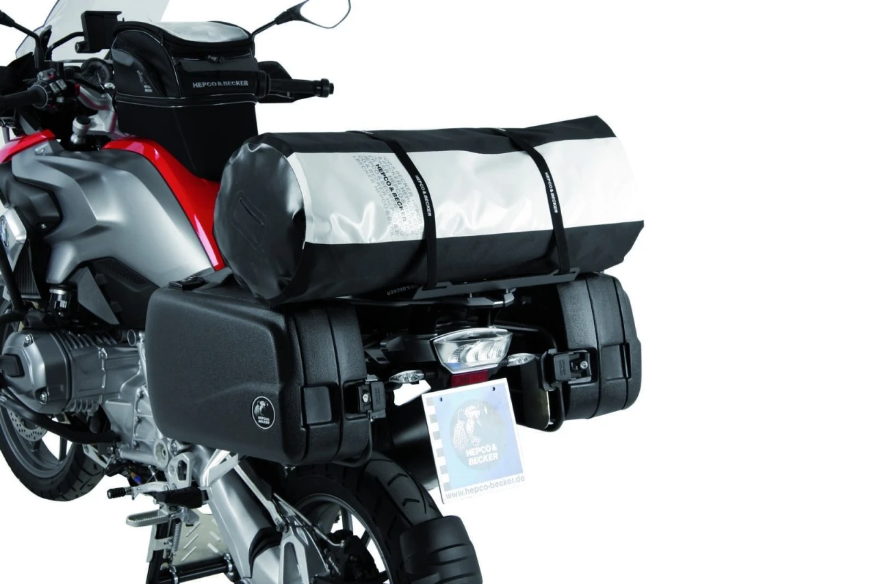 Hepco&Becker Packsäcke machen auf jeder Tour eine gute Figur: Schlank im Preis und im modernen, exclusivem Design kommt der standfeste Reisebegleiter daher. Der bewährte Rollverschluss mit einfacher Versteifungsleiste hält das Gepäck trocken und bringt die Ausrüstung aufs optimale Packmaß. Für einfaches Packen und mehr Stabilität beim Aufstellen sorgt der verstärkte Boden. Steckschnallen mit zwei D-Ringen zum Anhängen/Abschließen sind vorhanden. In Verbindung mit der separat erhältlichen Gepäckbrückenverbreiterung und den Spanngurten sicher zu befestigen.