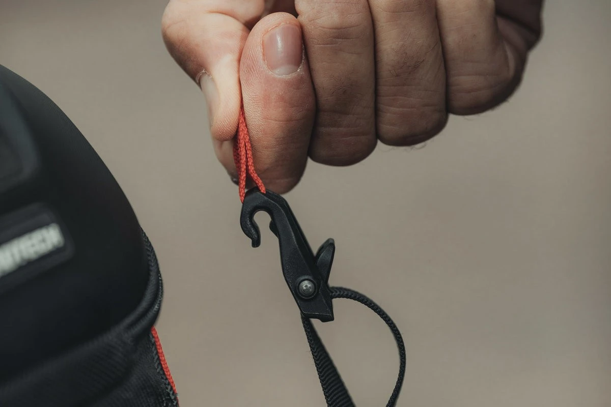 Die patentierten Zurrhaken erlauben eine flexible Befestigung der PRO Hecktaschen. Dabei erfolgen das Einhaken und das Spannen der Gurte in einem Schritt. Zum Abnehmen der Tasche wird der Gurt mit einem Handgriff entspannt und durch Ziehen am Zugband aus der Zurröse entfernt. Die überschüssige Gurtlänge kann mit einem Klettverschluss am Gurt gesichert werden. So kann die Tasche an verschiedenen Motorrädern zum Einsatz kommen und die Gurtlänge entsprechend angepasst werden.