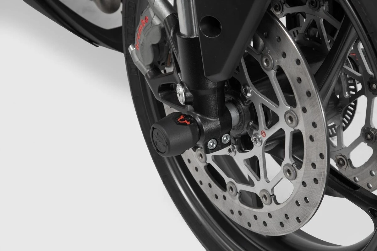 Die Sturzpads für die Vorderachse aus abriebfestem Kunststoff schützen die Gabel vor Beschädigungen im Falle eines Sturzes. Mit einem Glasfaseranteil von 30% ist der Kern der Sturzpads widerstandfähig beim Aufprall. Die glatte Oberfläche sorgt zudem für hervorragende Gleiteigenschaften. Das polierte, rote Bullen-Logo sorgt für ein optisches Highlight an deinem Motorrad.
