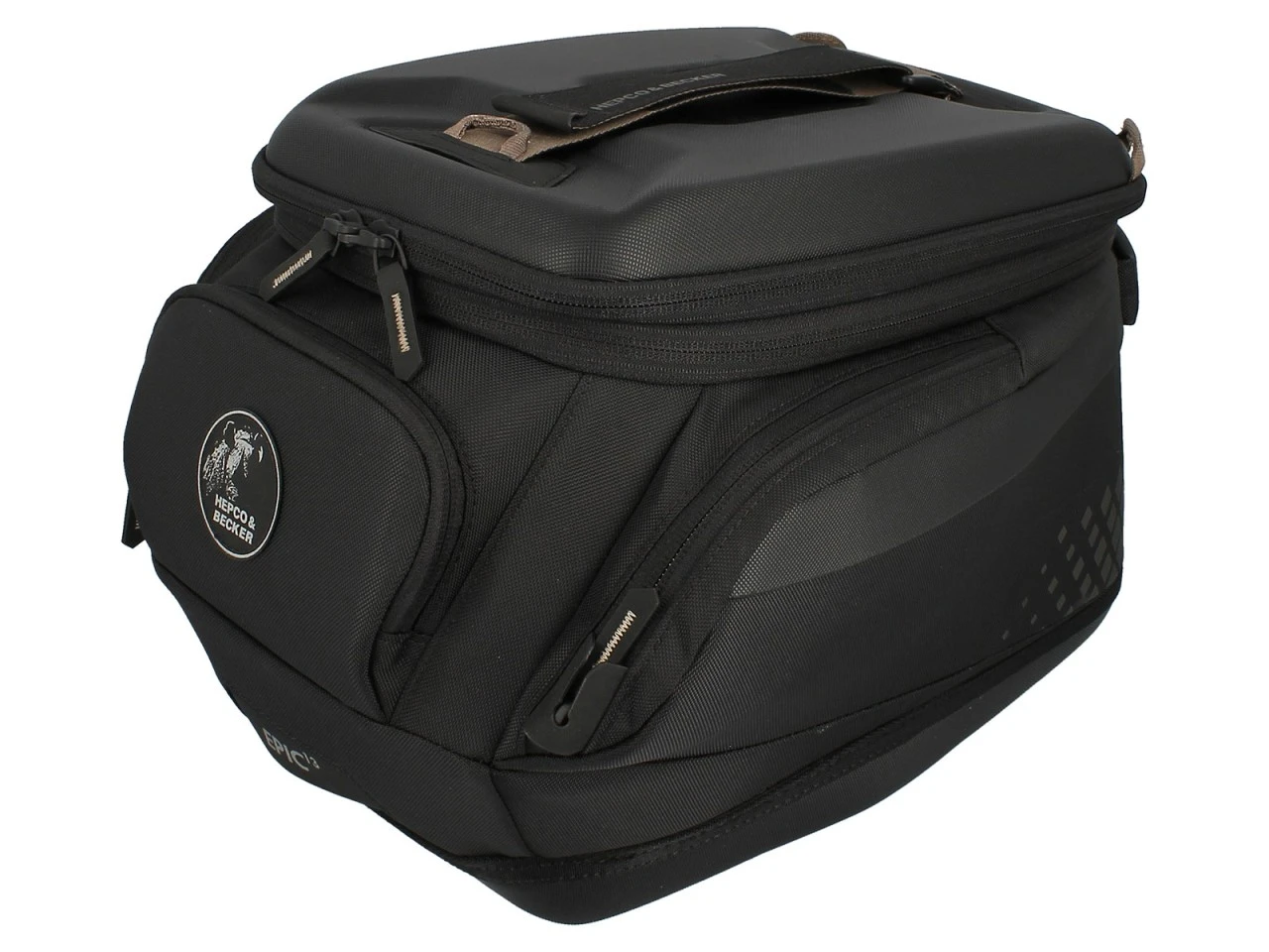 Der Tankrucksack Epic 13 von Hepco&Becker – Dein verlässlicher Partner für motorisierte Abenteuer! Der Tankrucksack Epic 13 ist mehr als nur ein einfaches Zubehör. Er ist dein ständiger Begleiter auf der Straße, der perfekt auf über 450 modellspezifischen Hepco&Becker Tankringen montiert werden kann. Mit seinem hochverdichteten EVA-Schaum behält er stets seine Form, während das reißfeste und robuste 840D Ballistic Polyester für Langlebigkeit und Strapazierfähigkeit sorgt. Die abschließbaren Reißverschlüsse bieten dir die Gewissheit, dass deine Habseligkeiten sicher und geschützt sind. Du behältst die volle Kontrolle über deinen Stauraum. Ein robuster Tragegriff ermöglicht es dir, den Rucksack mühelos zu transportieren, wenn du ihn abnimmst. Das wasserabweisende Außenmaterial sorgt dafür, dass deine Wertsachen selbst bei unerwartetem Regen trocken bleiben. Im Inneren des Deckels findest du zusätzliche Fächer mit Netzfächern, perfekt zur Organisation kleinerer Gegenstände. Kleine reflektierende Details auf dem Rucksack verbessern deine Sichtbarkeit im Straßenverkehr, insbesondere bei Nachtfahrten. Das bedeutet mehr Sicherheit für dich und andere Verkehrsteilnehmer. Das herausnehmbare, wasserdichte Innenfutter mit Rolltopverschluss ist besonders praktisch. Es lässt sich mühelos durch Druckknopfbefestigung entfernen und wieder anbringen. So bleiben deine Sachen bei Regen trocken und geschützt. Der Rundumreißverschluss ermöglicht eine einfache Volumenerweiterung, wenn du mehr Platz benötigst. Der Tankrucksack Epic 13 passt sich deinen Bedürfnissen an. Mit dem Schlaufen-System auf dem Deckel kannst du optionales Zubehör wie die Hepco&Becker Karten- oder Smartphonetasche befestigen, ohne den Rucksack zu beschädigen. Kein Bohren erforderlich! Dank der vormontierten Gewindeplatte ist die Aufnahme der Tankrucksack Verschlusseinheit ein Kinderspiel. Der Tankrucksack Epic 13 von Hepco&Becker ist bereit, dich auf all deinen Abenteuern zu begleiten. Mit ihm hast du alles, was du brauchst, sicher verstaut und griffbereit.