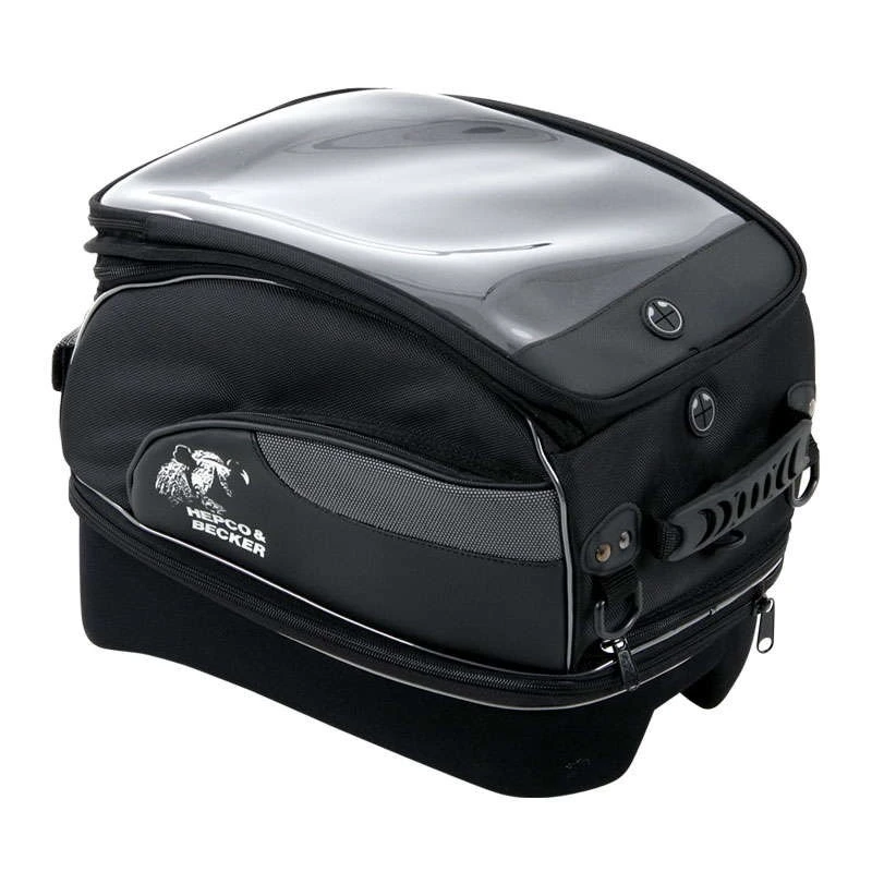 Aus der neuen Tankrucksackserie von Hepco & Becker in der Tourer XL Variante. Durch das neu entwickelte Lock-It System kann der Tankrucksack schnell und einfach an- und abgebaut werden. Außerdem ermöglicht es eine individuelle Positionierung und Anpassung an ihr Motorradmodell durch einen Befestigungskanal im Boden des Tankrucksacks. Für die Montage ist der entsprechende spezifische Tankring von Hepco & Becker für Ihr Motorrad notwendig. Dieser muss separat bestellt werden. Der Gegenhalter, welcher an die Tasche montiert wird, ist beim Tankring mit dabei. Sollten Sie diesen Tankrucksack als zweiten Tankrucksack auf Ihrem Tankring benutzen wollen, benötigen Sie einen zusätzlichen Gegenhalter. Art.: HB506000