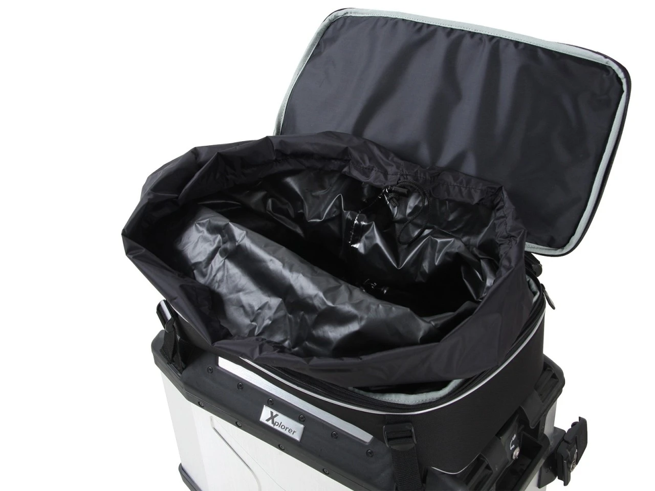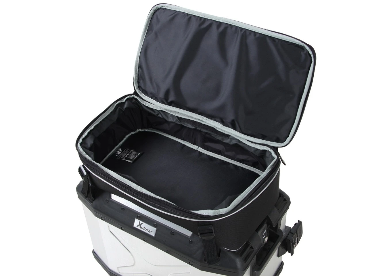 Die sinnvolle Erweiterung der Xplorer-Serie. Falls es mal etwas mehr sein soll. Die Toptasche mit Erweiterungsreißverschluss wird mit 4 Gurten auf dem Xplorer Deckel angebracht. Die Ösen für die Gurte sind bereits im Deckel integriert