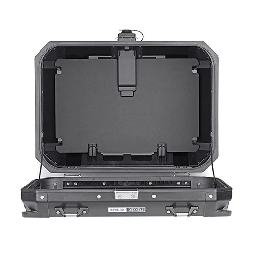 Das 58 L – TREKKER OUTBACK Black Line Topcase kann zwei Integral- oder Modularhelme aufnehmen