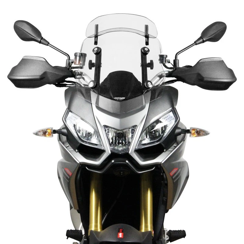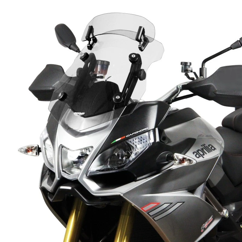 Diese Tourenscheibe hat am Ende einen Spoiler, der sich manuell in sieben Stufen auf die gewünschte Position verstellen lässt. Durch die Hinterströmumg des Spoilers wird der Winddruck vom Fahrer genommen und gleichzeitig die Turbulenzen reduziert. Die Vario- Touringscreen ist in klar und rauchgrau erhältlich.